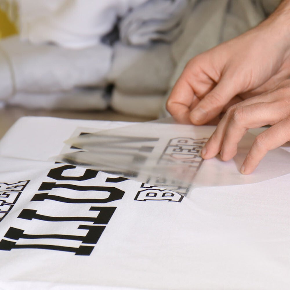 Beim Flexdruck wird eine dünne, farbige Folie präzise und sorgfältig zugeschnitten, anschließend unter Hitzeeinwirkung dauerhaft auf das Textil gepresst.